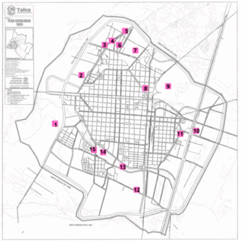 Elaborado por Paula Rodríguez M., con datos del Archivo Histórico de la Municipalidad de Talca (1964-1973); Barrueto (2021); La Mañana (1964-1973); Oficina de Planificación Nacional. ORPLAN del Maule (1991); Ministerio de Vivienda y Urbanismo (2011); Secretaria Comunal de Planificación (1991).
